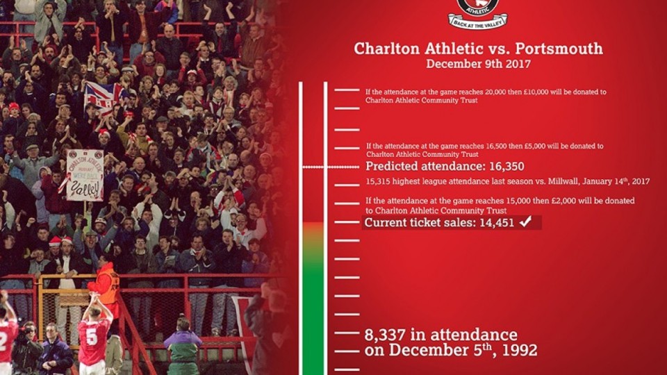 Charlton Athletic are targeting an attendance of more than 16,500 for Saturday’s anniversary game, which would guarantee a donation totalling £5,000 to the Charlton Athletic Community Trust.