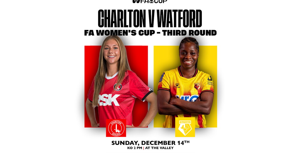 Charlton Athletic Women will be face Watford on Sunday, December 14th in the third round of the Adobe Women's FA Cup (KO 2pm GMT).