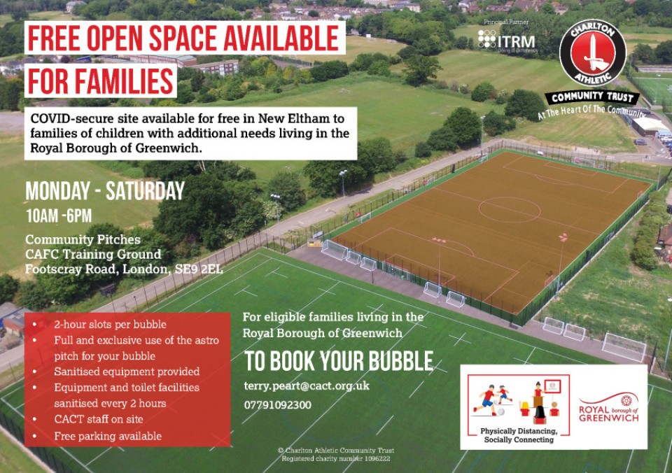 Charlton Athletic Community Trust is working with the Royal Borough of Greenwich to makes its pitch at its site in New Eltham available for families of children with additional needs.