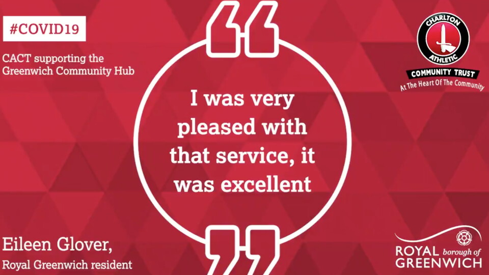 Eltham resident Eileen Glover has thanked Charlton Athletic Community Trust (CACT), the Royal Borough of Greenwich (RBG) and partners for the support she has received through the Greenwich Community Hub.