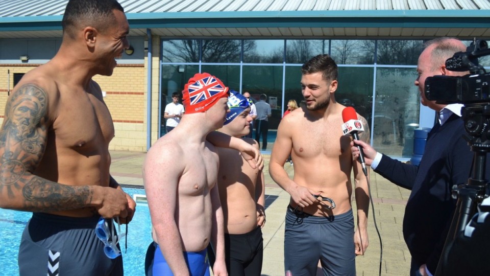 Billy Birchmore, an 11-time gold medallist at the Down’s syndrome International Swimming Organisation European Championships in November, and Jack Lyons, who also represents Team GB, swam eight lengths in a team race in the outdoor pool.