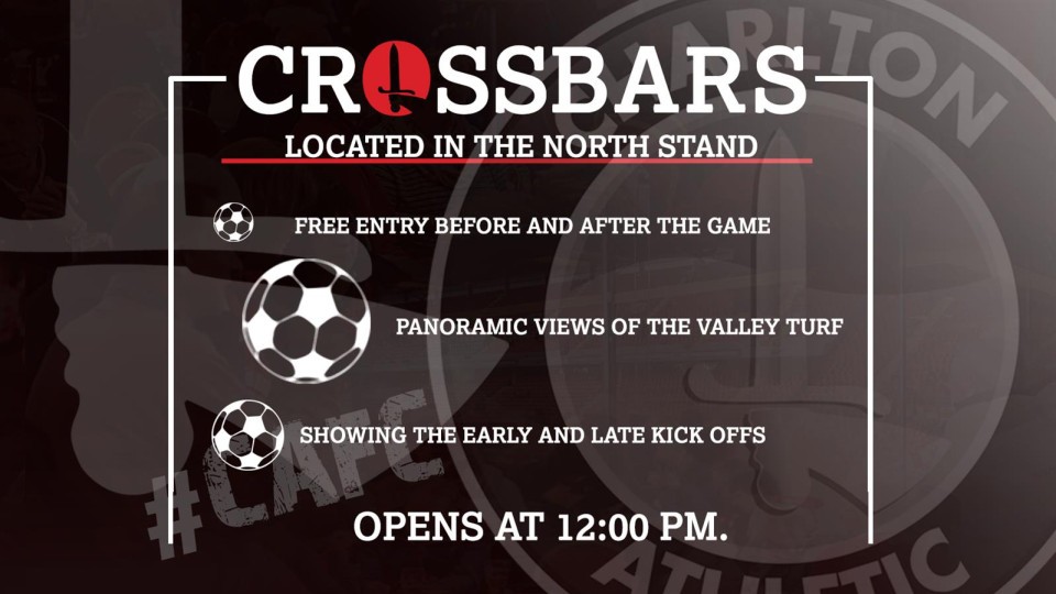 Charlton season-ticket holders and home supporters with match tickets can gain free entry to fans' bar Crossbars before and after Saturday's local derby against Millwall at The Valley (3pm).