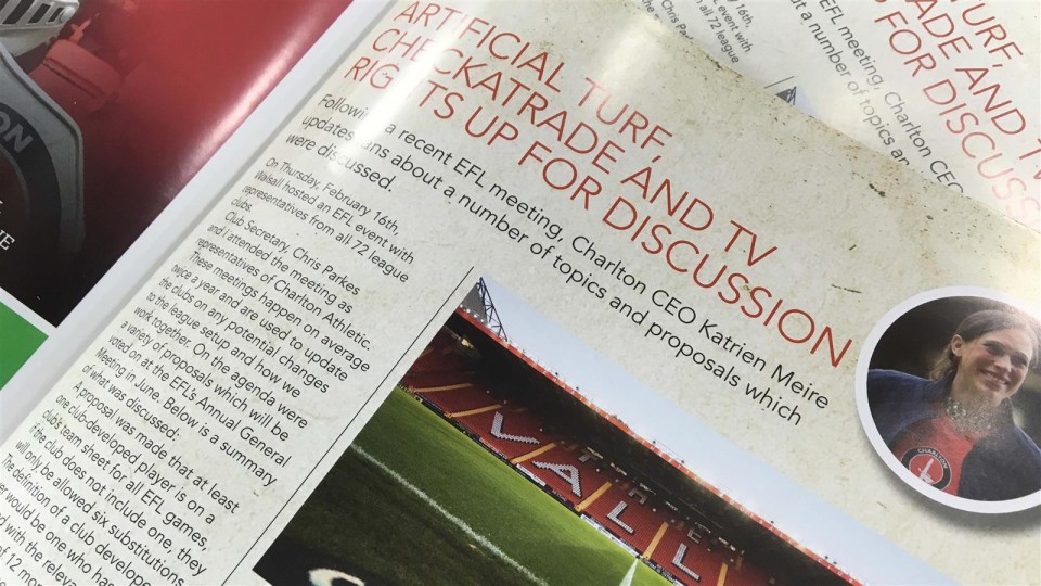 Charlton CEO Katrien Meire penned a column in Saturday's edition of Valley Review to update supporters on a number of topics that were discussed at a recent EFL meeting...