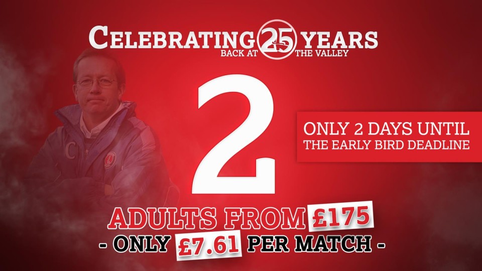 There are just two days remaining until the early-bird deadline for 2017/18 season tickets.