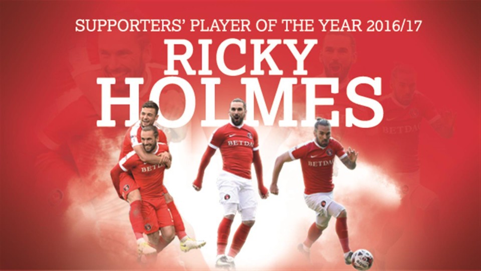 Ricky Holmes has been named as Charlton supporters’ Player of the Year for the 2016/17 season.