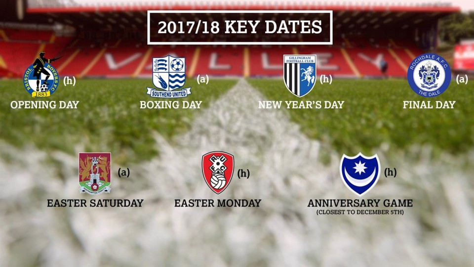 Charlton will kick off the 2017/18 season by hosting Bristol Rovers on opening day and celebrate 25 years back at The Valley with a home clash against Portsmouth on Saturday, December 9th.
