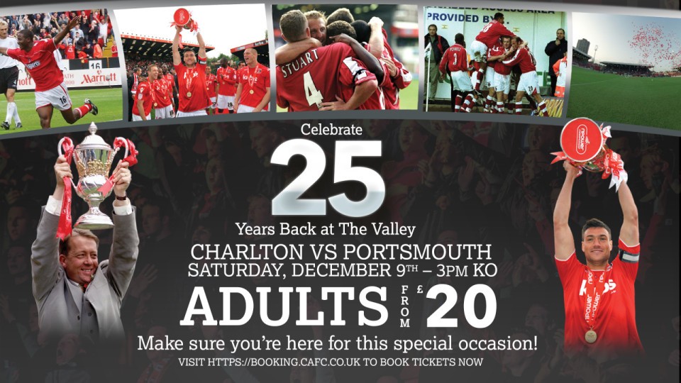 To celebrate 25 years since the club’s return to The Valley and 25 years of the Charlton Athletic Community Trust, the club is donating 25% of home ticket revenue from the game along with 25% of matchday programme sales to the charity.