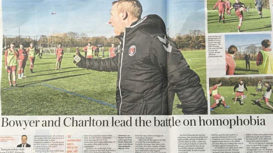 How Lee Bowyer and Charlton are leading the battle on homphobia, report the Daily Telegraph