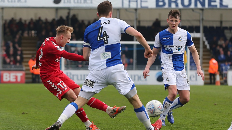 Bristol Rovers: Slocombe, Brown, Lockyer, Sercombe (Broadbent 23), O Clarke, Harrison, J Clarke (Kelly 77), Moore, Mensah (Gaffney 51), Craig, Bennett.