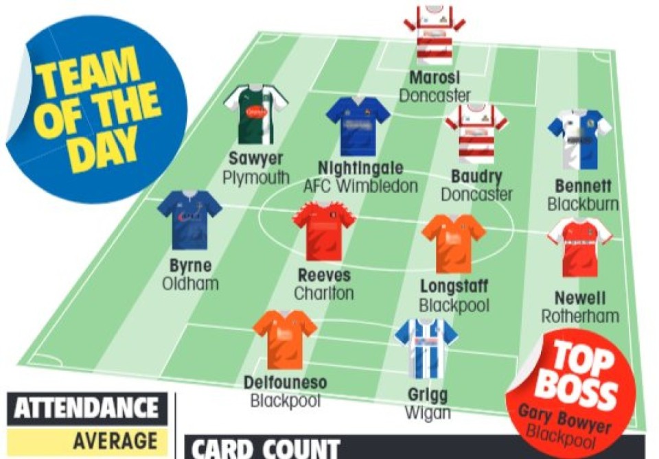 Ben Reeves has been recognised for his impressive performance against Bristol Rovers on Saturday by being named in the Football League Paper Team of the Day.