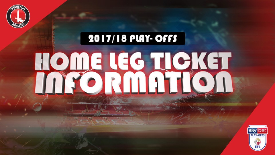The Addicks secured a sixth-placed finish in Sky Bet League One on Saturday evening and tickets for Thursday's home leg will be sold via Ticketmaster.