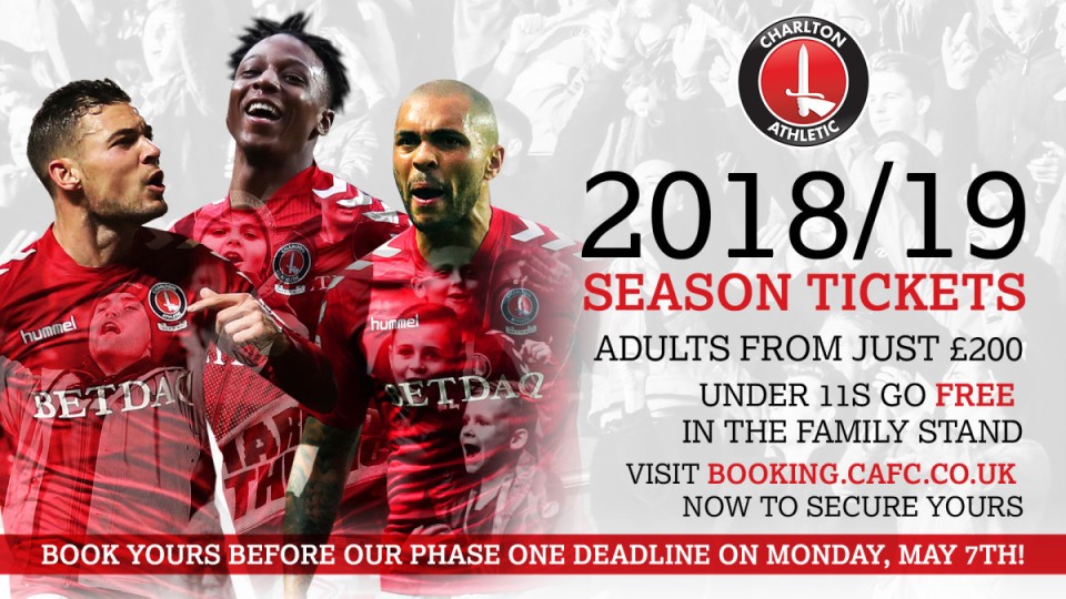 Tickets will initially be on sale to season ticket holders and Valley Gold members and, from 8am on Tuesday, May 8th they will go on sale to all Charlton supporters.