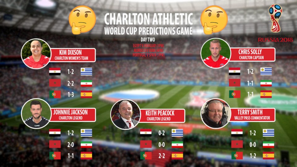 Egypt take on Uruguay at 1pm UK time, with Morocco facing Iran at 4pm and Portugal playing Spain at 7pm. The Addicks’ predictions are available to view below.
