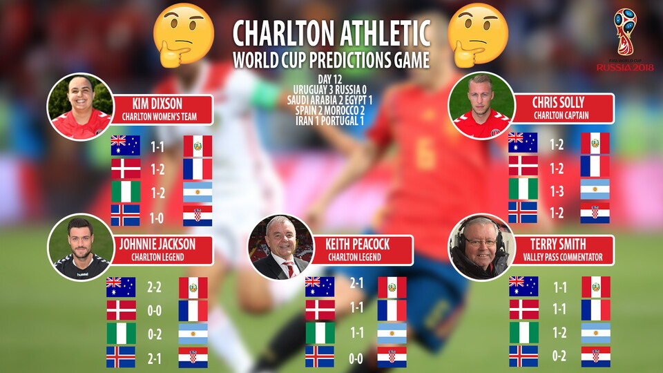 Chris Solly and Kim Dixson were the only people to gain points from Day 12 in the World Cup prediction league after both correctly predicting the outcome of the Uruguay Russia fixture to earn a point each.