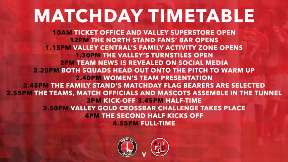 Fans are also advised to arrive at The Valley in good time, and to plan their journeys in advance, in order to avoid long queues when buying tickets and entering the ground. Searches will be taking place at the turnstiles due to heightened security in the capital at this time.