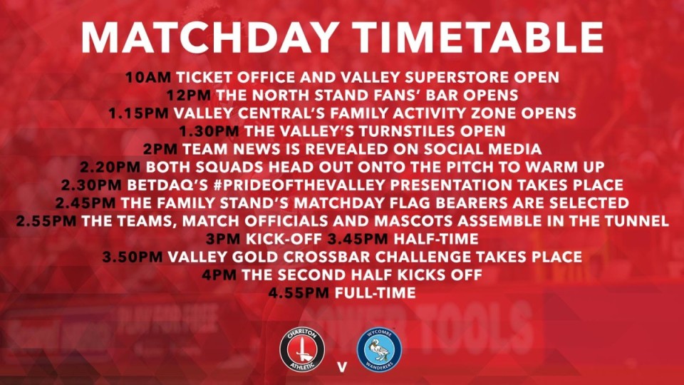 Supporters can follow all the build-up to the game on Charlton's official Instagram account, official Twitter account, Facebook page and official Snapchat account.
