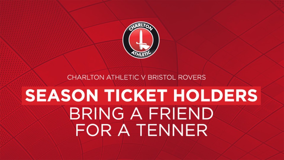 Charlton season ticket holders can bring a friend to November’s Sky Bet League One clash against Bristol Rovers for just £10.