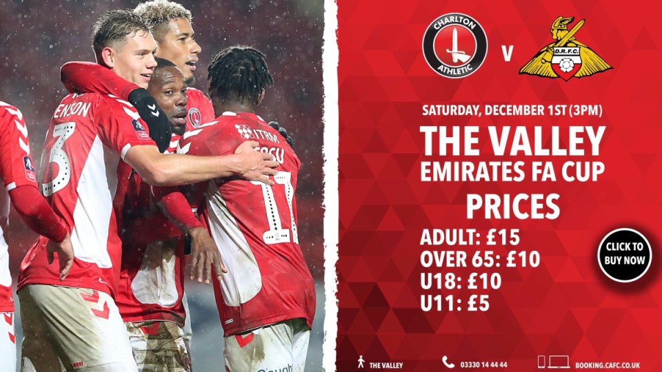 Charlton’s Emirates FA Cup second-round tie against Doncaster Rovers will be contested at The Valley on Saturday, December 1st (3pm).