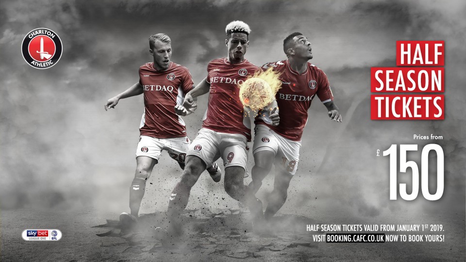 Half season tickets for the second half of Charlton’s 2018/19 league campaign will go on sale at 10am on Saturday morning.