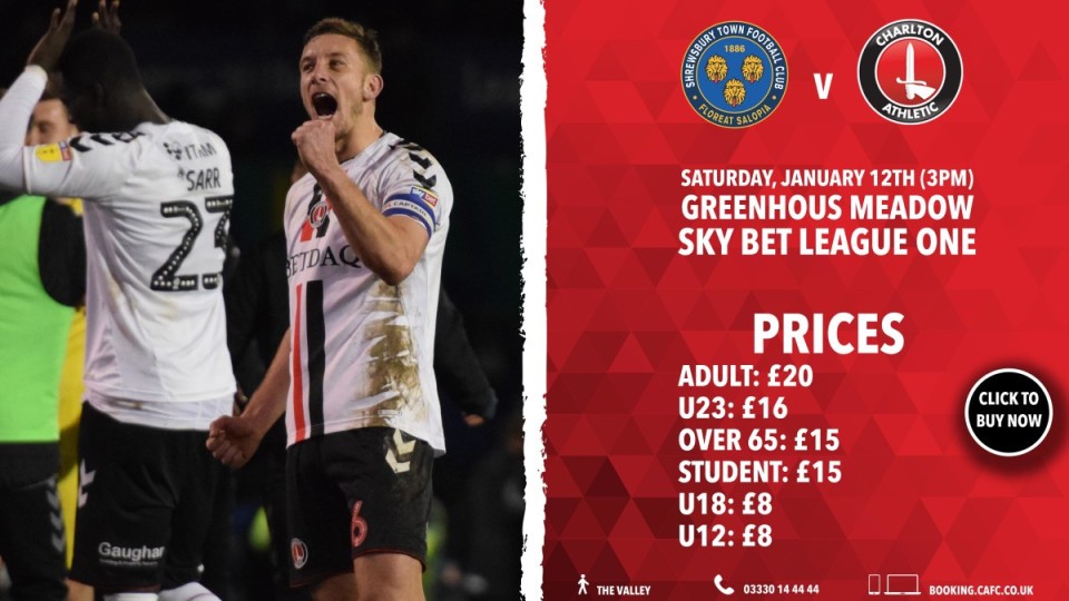 Meanwhile, tickets for Charlton’s trip to Shrewsbury Town on Saturday, January 12th are also set to go on sale on Thursday morning.