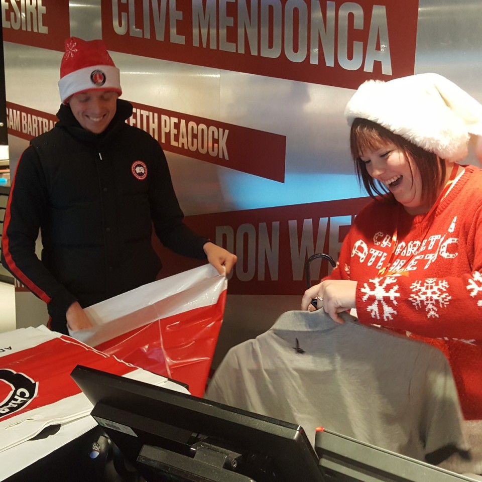 As well as buying the Christmas present, George helped print “Lapslie, 32” on the back of them. Kenny added: “He did alright with the printing, it wasn’t straight at first but we got there in the end! It was good for him to come in and actually do what the shop staff do every day and help the fans, which we really appreciated.”