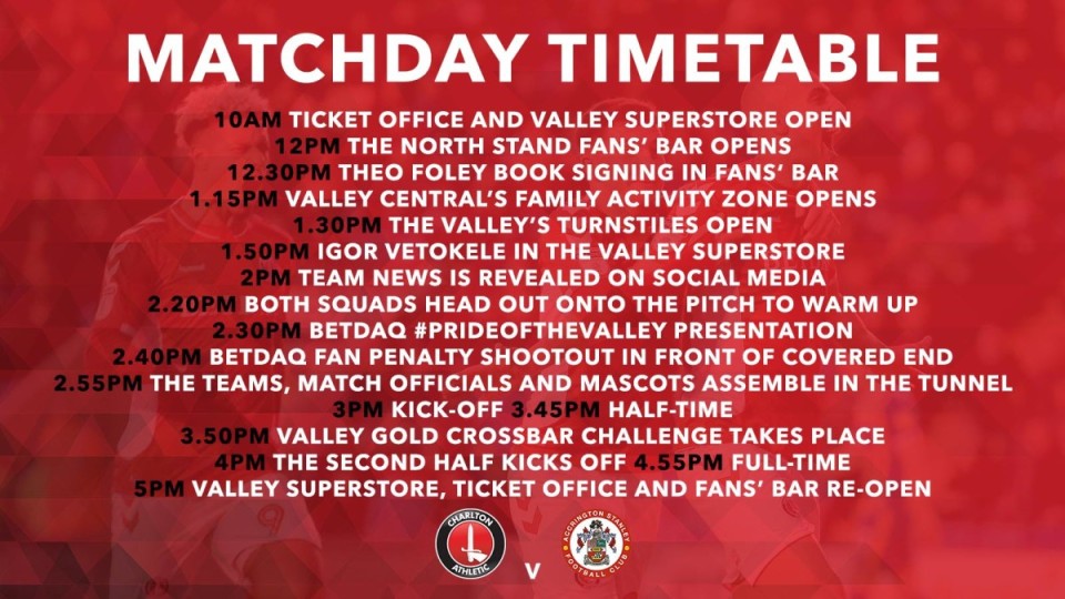 - Catch the Valley Gold crossbar challenge at half-time with £6,000 is up for grabs