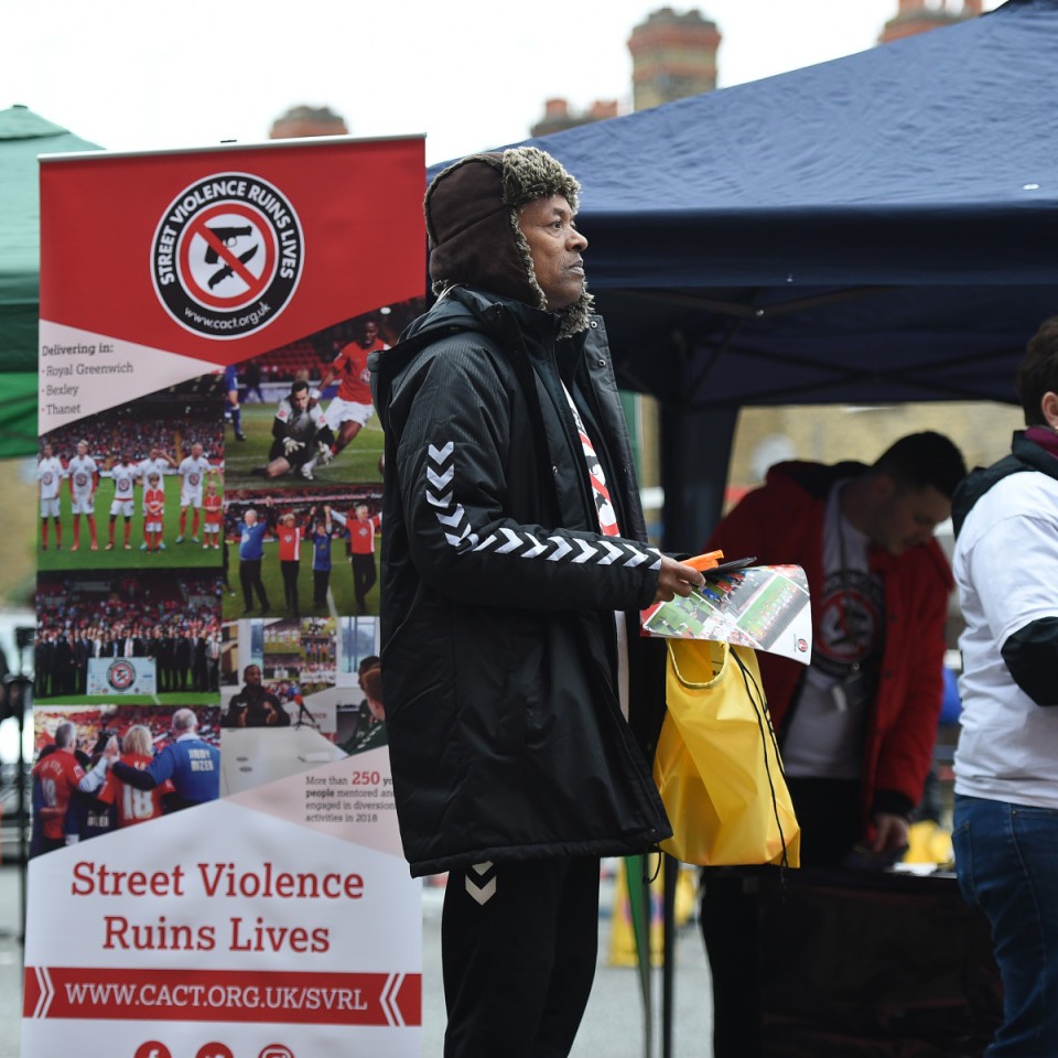 CACT mentors and Young Greenwich youth workers spoke to fans about the campaign by mobile units outside the West Stand, handing out copies of CACT’s new SVRL strategy and discussing the programmes CACT delivers to reduce street violence.