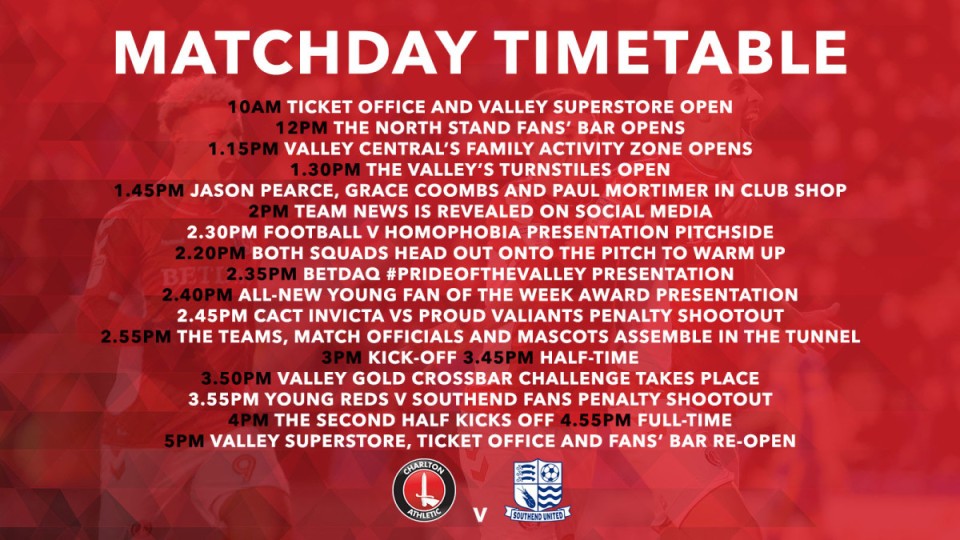 Fans are also advised to arrive at The Valley in good time, and to plan their journeys in advance, in order to avoid long queues when buying tickets and entering the ground. Searches will be taking place at the turnstiles due to heightened security in the capital at this time.