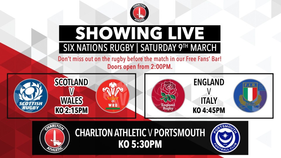 It promises to be an exciting day of rugby in the Six Nations and doors will be open from 2pm with fans invited to join us for both Scotland against Wales and England against Italy, ahead of Charlton’s 5.30pm kick off against play-off rivals Portsmouth.