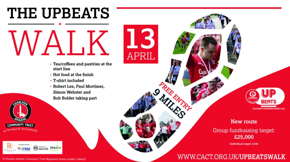 The Upbeats Walk on April 13th starts at the club's training ground in Sparrows Lane. Everyone that will be part of the event will travel nine miles make it to The Valley in time for kick-off in the club’s game against Luton Town.