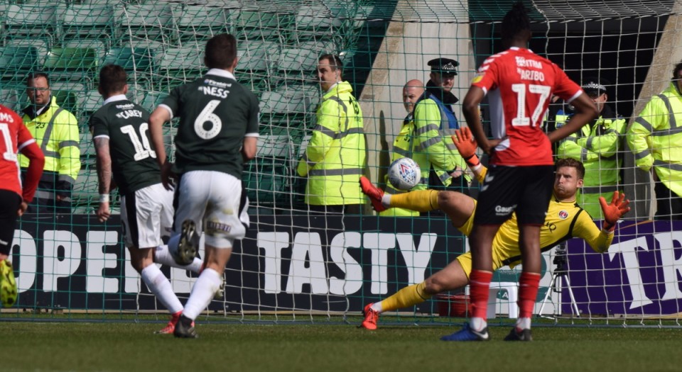Plymouth’s Freddie Ladapo stung the palms of Phillips on the half-hour mark, having cut inside from the right flank, and the Charlton stopper was called into action again a couple of minutes later when he had to tip a thumping Carey strike over the bar.