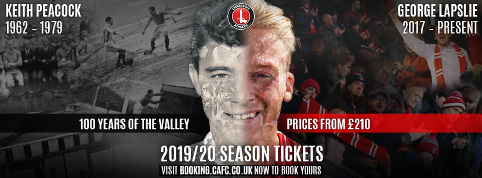 Charlton will celebrate 100 years of its historic home, The Valley, in 2019/20 and season tickets for next term will be on sale from Saturday.
