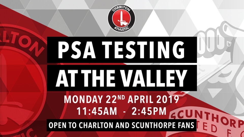 Fans from both Charlton and Scunthorpe United can have a PSA Blood Test at the stadium from 11.45am-2.45pm in the Fans’ Bar.