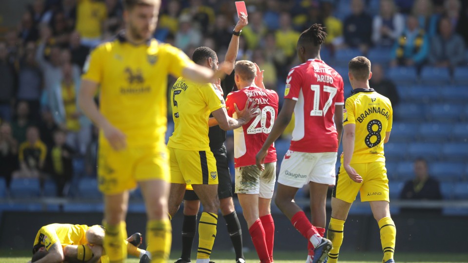 Solly received his marching orders in the 73rd minute of Friday’s clash at Oxford for a foul on Jamie Mackie.