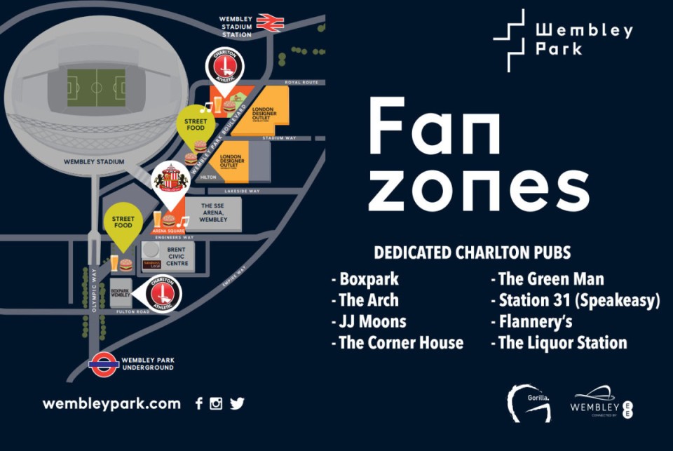 Charlton have been allocated the west side of the stadium which is the right-hand side as you approach the famous arch down Wembley Way (or officially Olympic Way) from Wembley Park station.