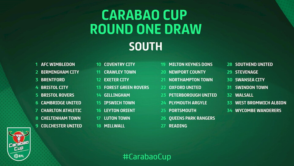 The Carabao Cup Round One draw will take place at 7pm on Thursday, 20th June, live from Morrisons, Colindale.
