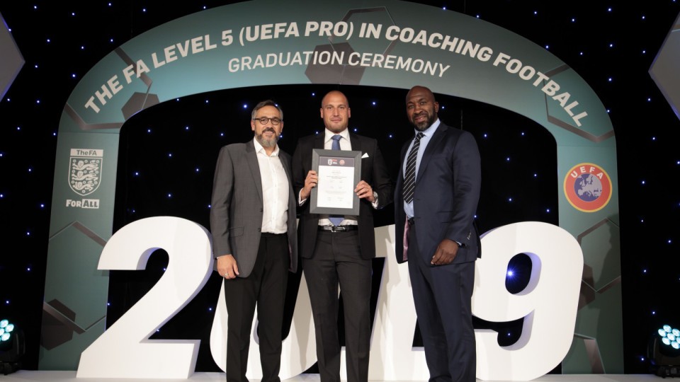 He joined 27 other coaches in celebrating their graduation from The FA Level 5 (UEFA Pro) in Coaching Football qualification at St. Georges Park.