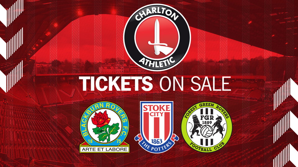 Tickets for the opening day trip to Blackburn Rovers, as well as the first league game at The Valley against Stoke City and the cup clash with Forest Green Rovers are now on sale.