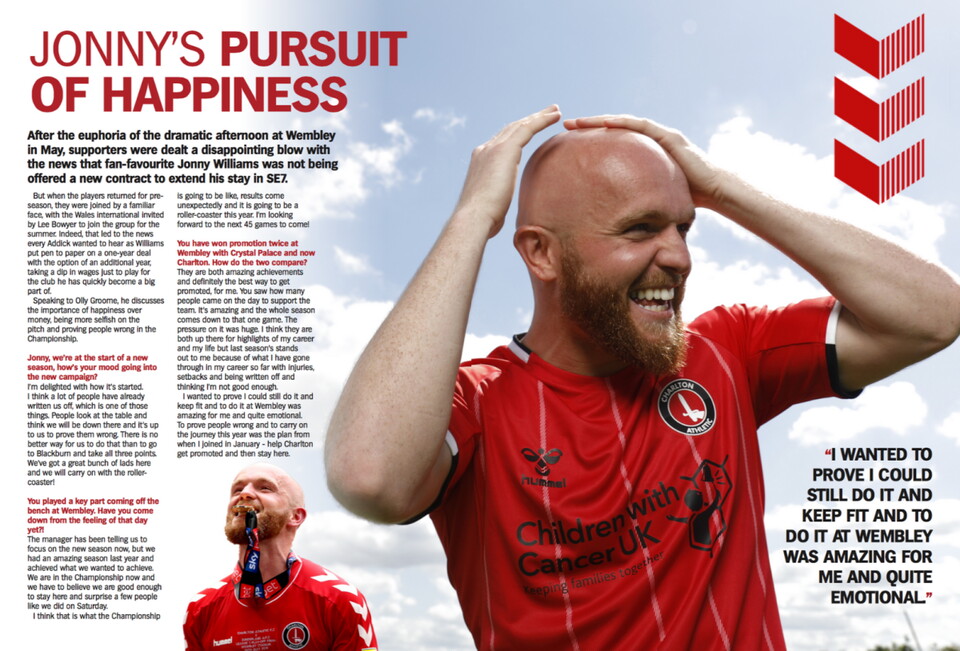 Jonny Williams stars as the first main feature interview of the new season following his return to SE7 in the summer. The terrace favourite discusses the importance of happiness over money, being more selfish on the pitch and proving people wrong in the Championship as well as revealing some of his tastes and experiences in a new feature called ‘Best and Worst’.
