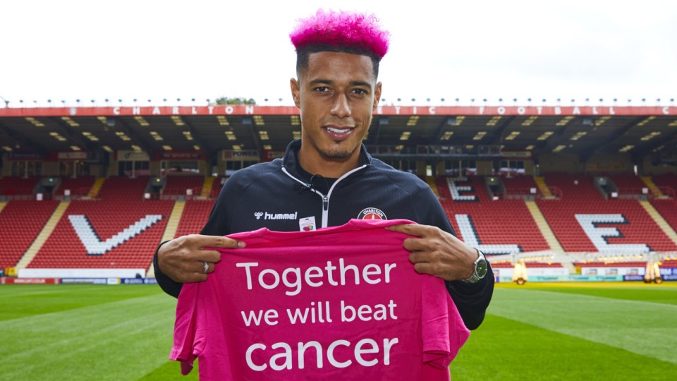 Charlton striker Lyle Taylor has gone pink this October to raise money and awareness for Cancer Research UK.