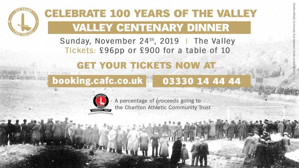 As with all Valley Centenary events throughout the season, a percentage of the proceeds will be going to Charlton Athletic Community Trust, as well as the committee itself, to help fund initiatives such as the rebranding of the Covered End following its official name change.