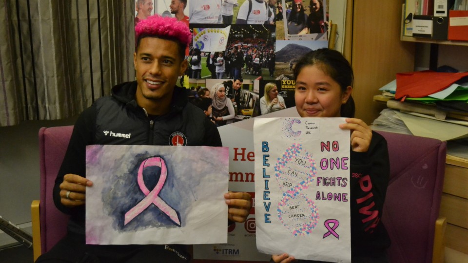 Charlton Athletic striker Lyle Taylor has hailed the winners of a poster design competition young people at Avery Hill Youth Hub entered as part of Young Greenwich Day and his Pink October campaign.