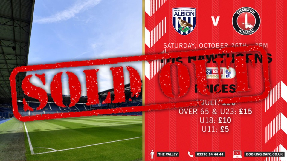 1,994 Addicks have SOLD OUT the away end at The Hawthorns, with no further tickets available.
