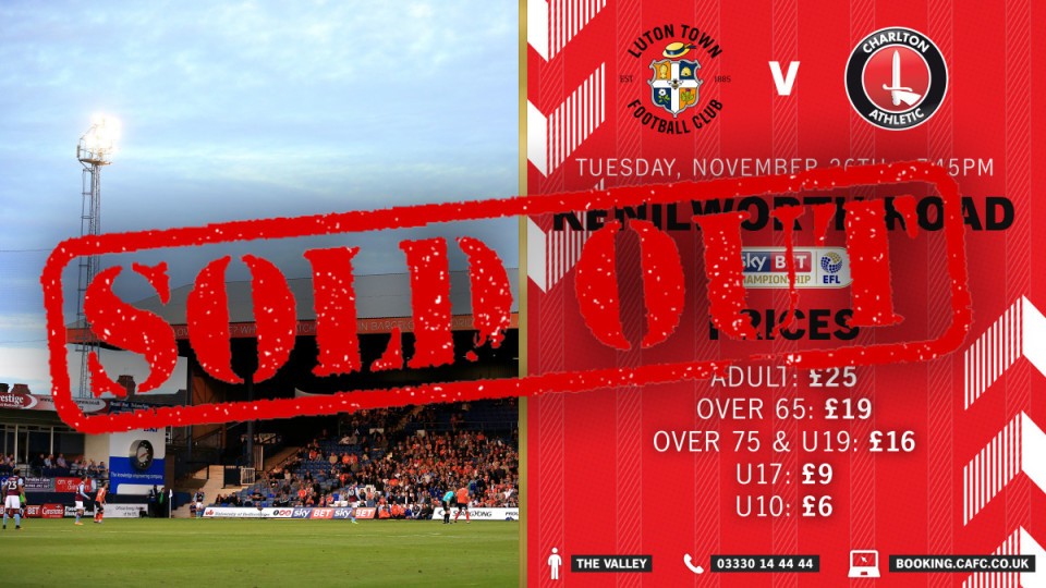 1,032 Addicks have SOLD OUT the away end, with no tickets available on the day.
