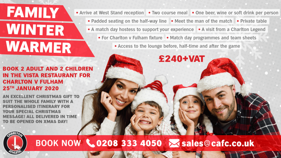 Our Winter Warmer deal give you the perfect opportunity to see what our Vista Lounge experience is like. This spectacular offer includes dining in our Vista Lounge restaurant for two adults and two U18s as we take on Fulham on Saturday, January 25th.