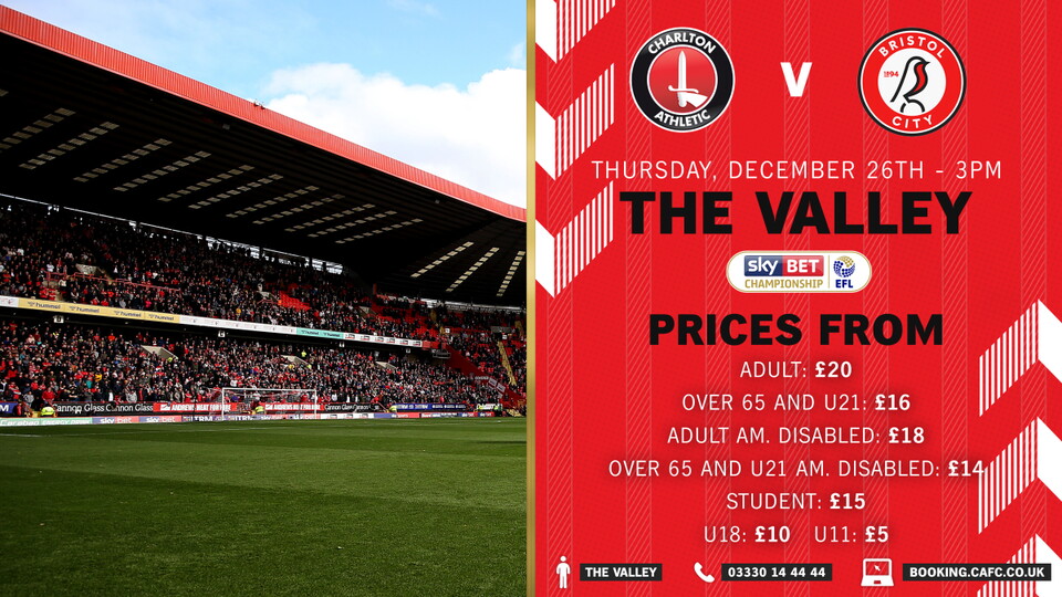 Charlton welcome Bristol City to The Valley on Boxing Day (3pm) as the Addicks look to harness the momentum from Saturday’s last-minute equaliser against QPR.