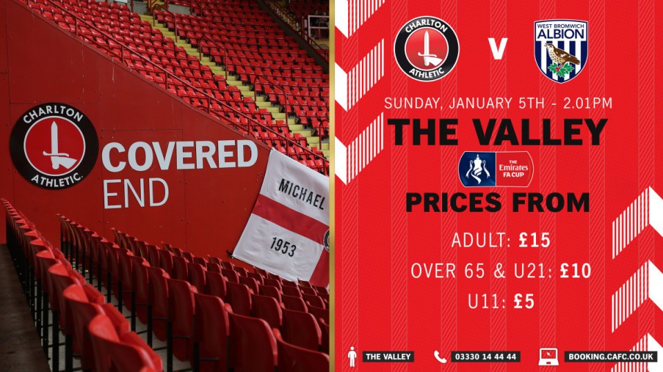 Charlton will take on their first challenge in this year's Emirates FA Cup when they face fellow Championship side West Bromwich Albion on Sunday (2.01pm)