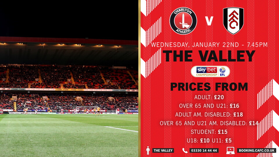 Charlton’s Sky Bet Championship game against Fulham at The Valley has been rearranged for a second time for Wednesday, January 22nd (7.45pm).