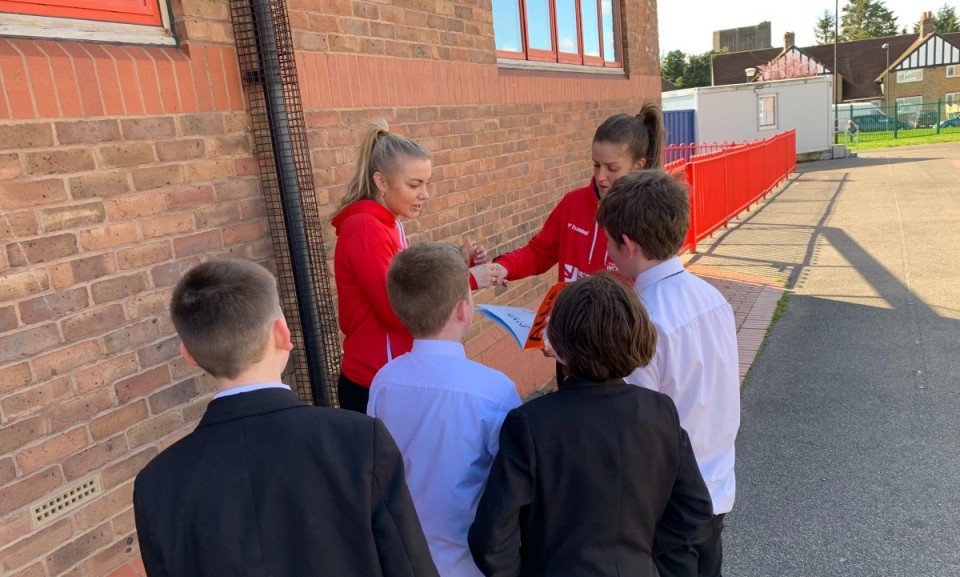 This week they visited Kings Oak Wood, an all-boys establishment where they were involved in a Q&A session before playing a game of football with the students. The pair spoke about the importance of visiting local schools in the community with Legg explaining her eagerness in getting the students involved in the sport.