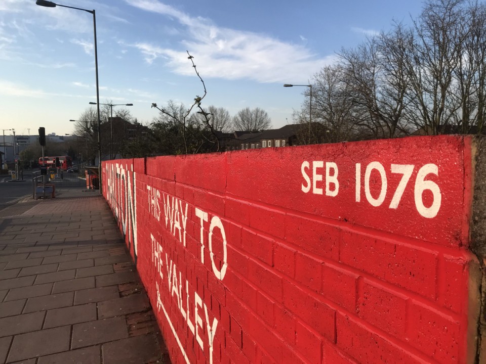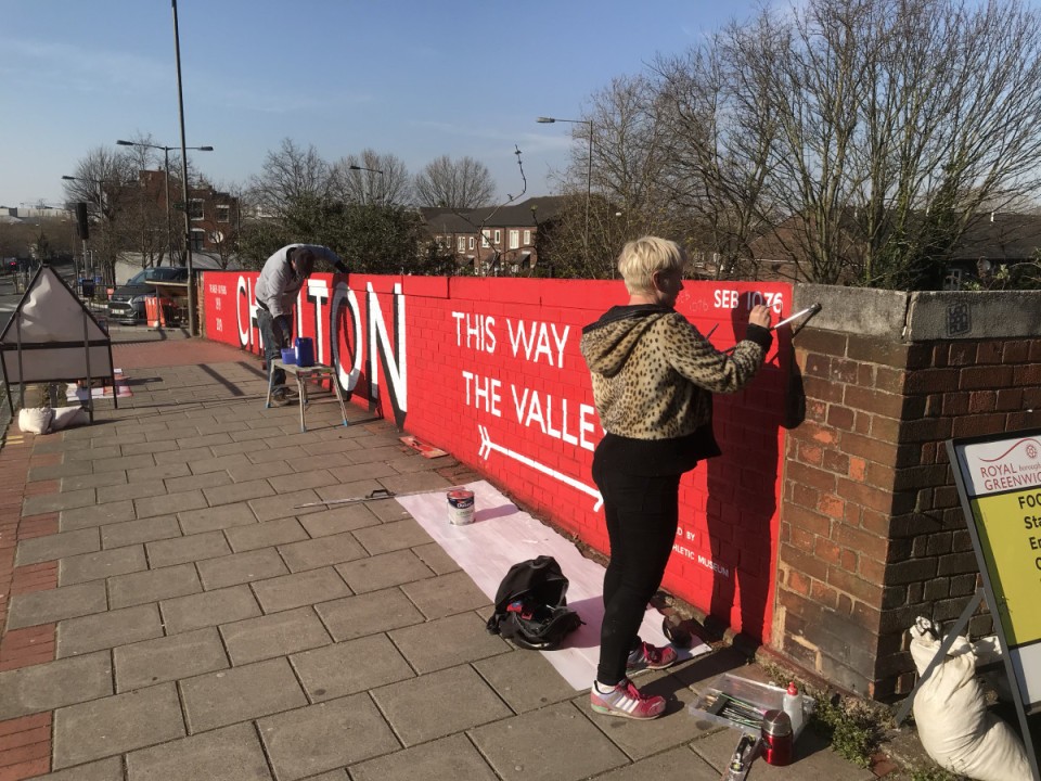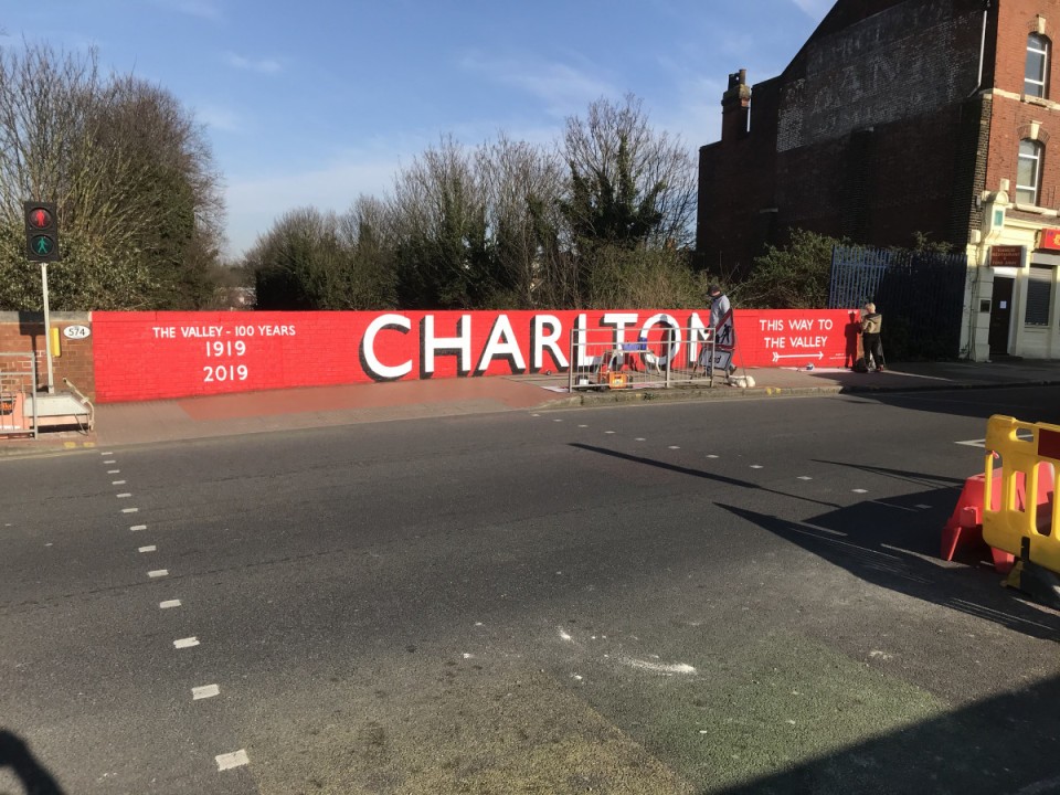 The mural marks 100 years since the Addicks first played at The Valley, just around the corner. It also directs visitors and tourists to the ground.
